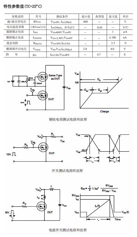 • 10A電流的MOS管可替代FQP4N60型號參數,應用在AC-DC開關電源