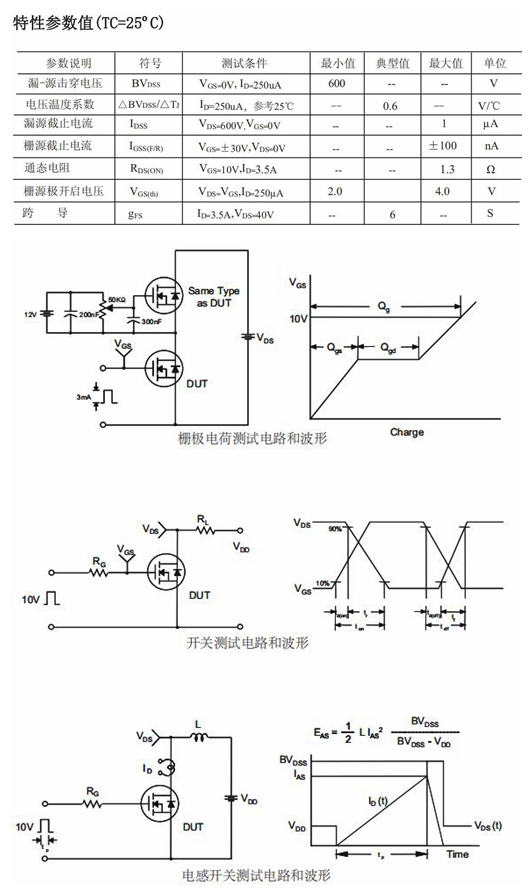 電源適配器MOS管型號詳細參數